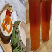 Le menu du Café Shobu se concentre sur les thés et les boissons. La star est sans doute le bubble tea, présenté en plusieurs saveurs. Des options comme l'eau de coco et la pistache ajoutent une touche unique. Les clients peuvent personnaliser leur boisson avec différents niveaux de sucre et de garnitures, comme les billes de tapioca.